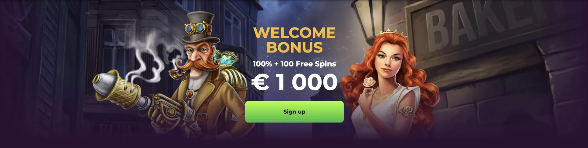 Welkomstbonus 100% + 100 Free Spins Eenmalig 40x (Bonus + Storting)